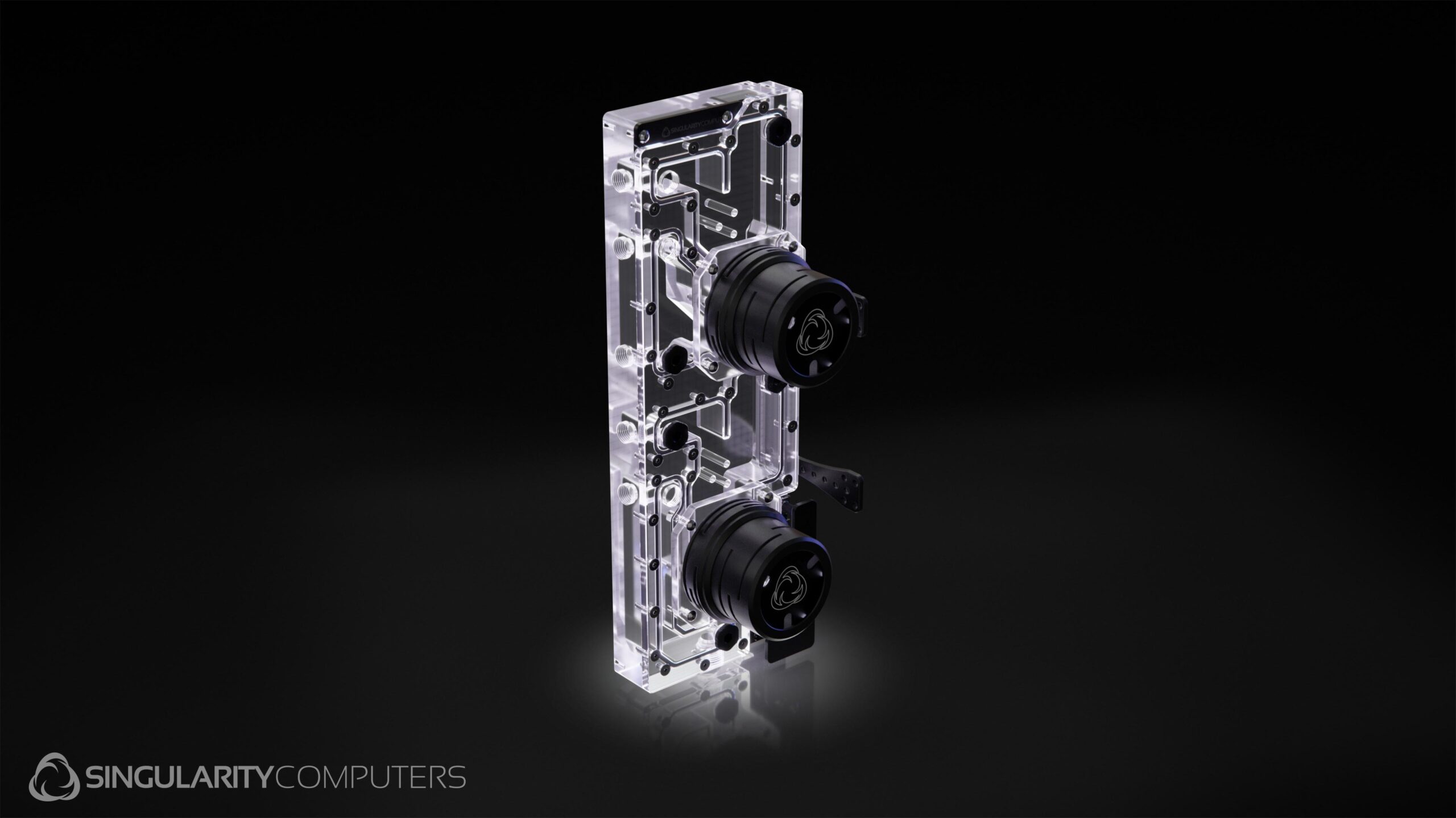 The Axiom Dual Loop ARGB D5 Reservoir Combo Distribution plate is a pump and reservoir combination designed to fit into water-cooled builds which have a 360mm, 420mm radiator or larger. It has maximum versatility with enough inlet and outlet ports for many different loop routes. It fits onto a 120mm or 140mm wide radiator and can fit on any radiator from 120mm all the way up to 560mm. It has been designed for maximum fluid volume for easy filling even in large water-cooling systems and has fill and drain ports built in. This is the Dual Loop version which has two integrated Reservoirs, D5 Pump Tops and D5 Pump Covers with ARGB lighting. It has electronics integration which includes integrated ARGB LEDs to light up the distribution plate. It also includes temperature-based RPM control with separately adjustable RPM curves for the pump and fans.