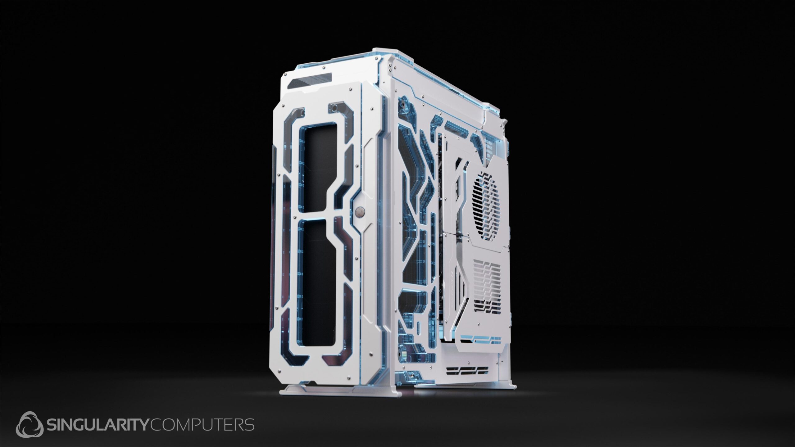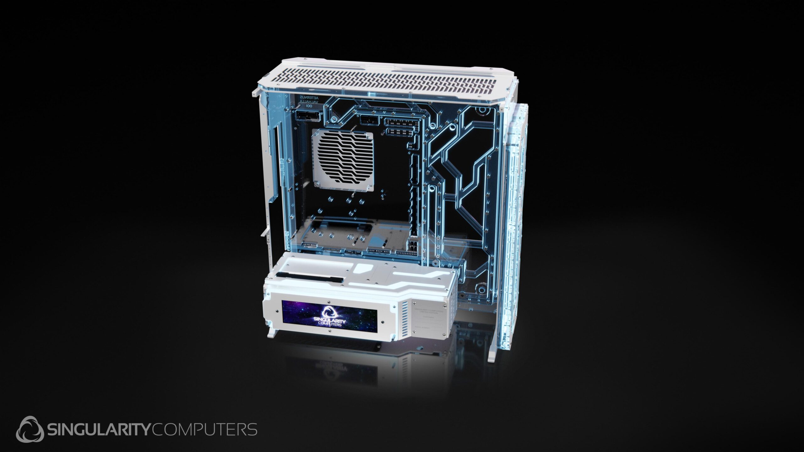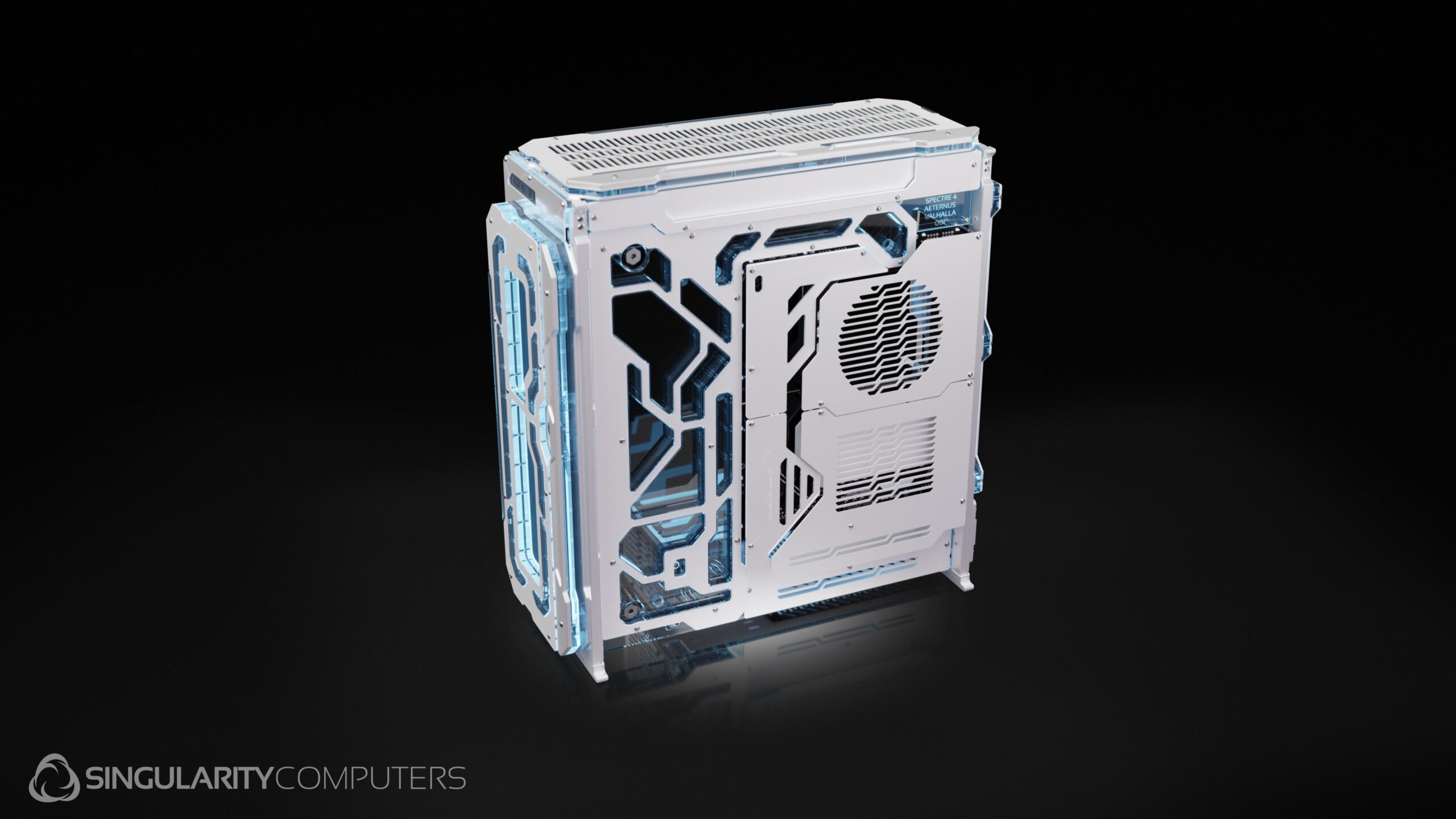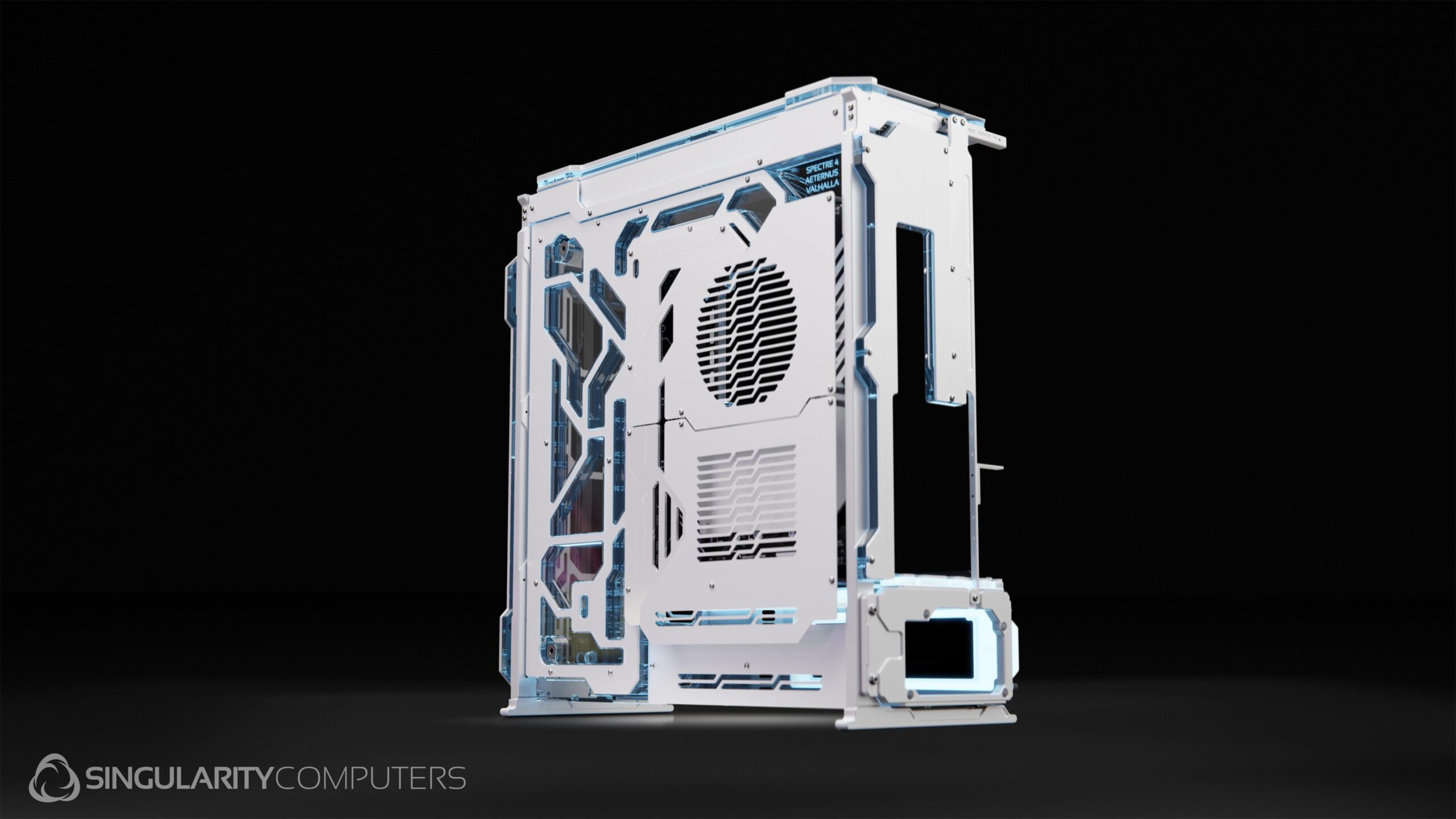 Spectre 4 Aeternus Valhalla is an all-white version of Spectre 4 Aeternus. It comes included with the Front Elite Distribution Plate and PSU Side Shroud Screen. It has special matte white custom paint and all white covers on the distribution plates.