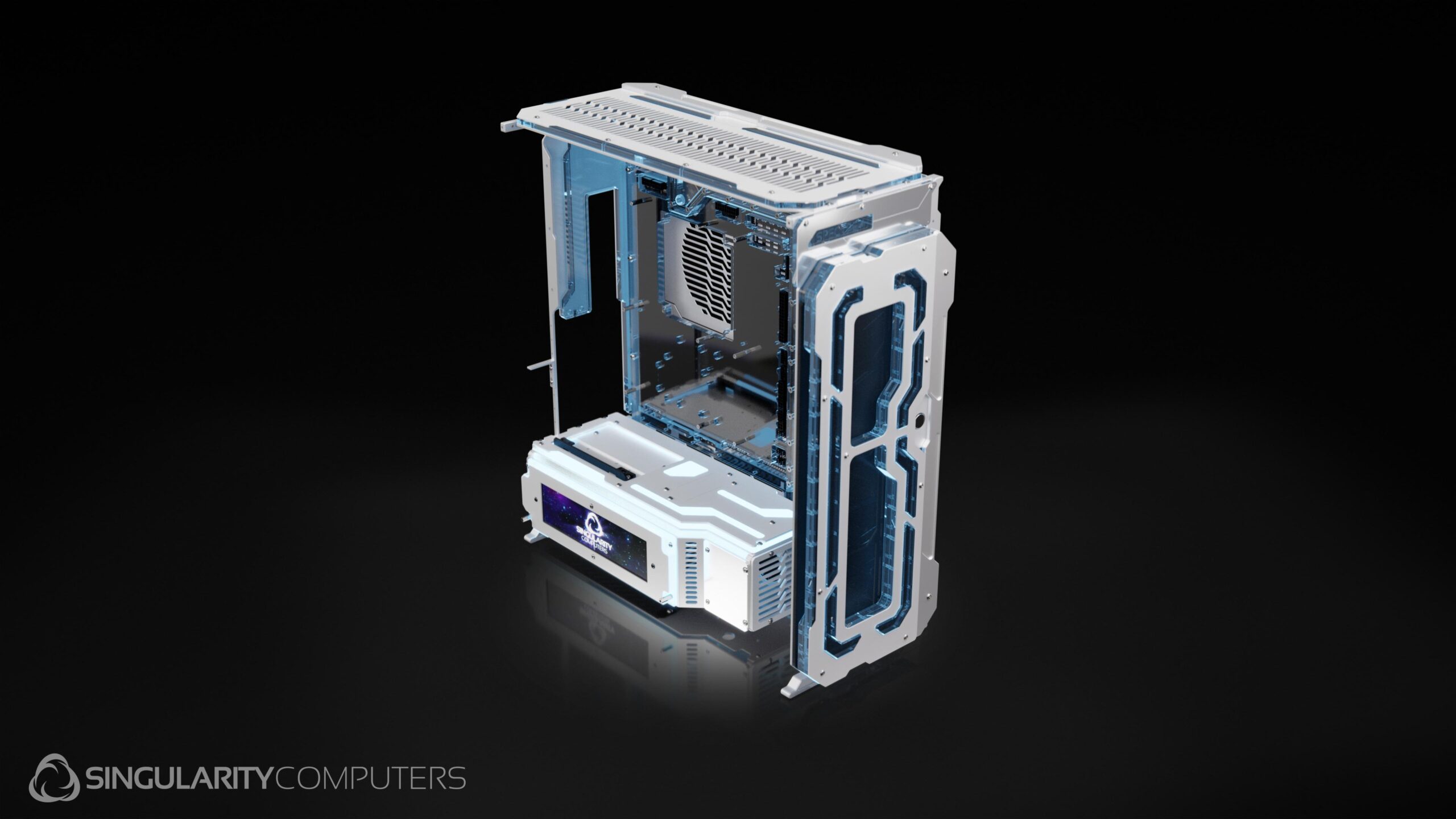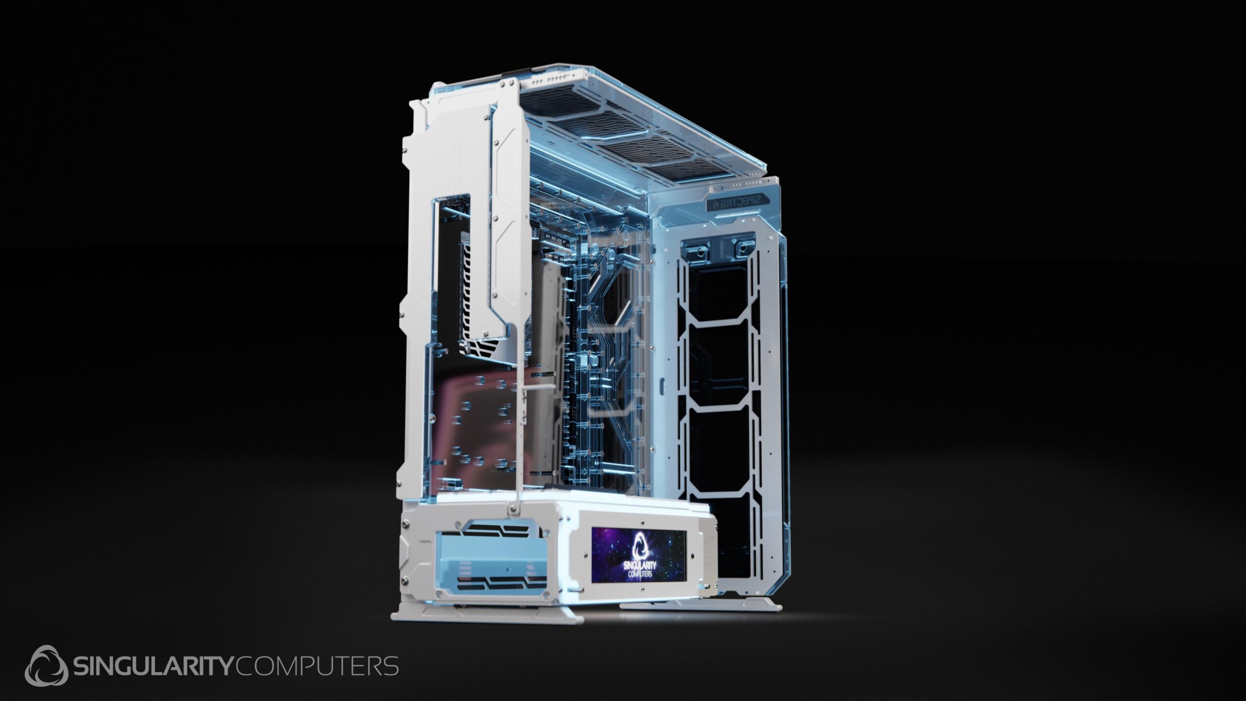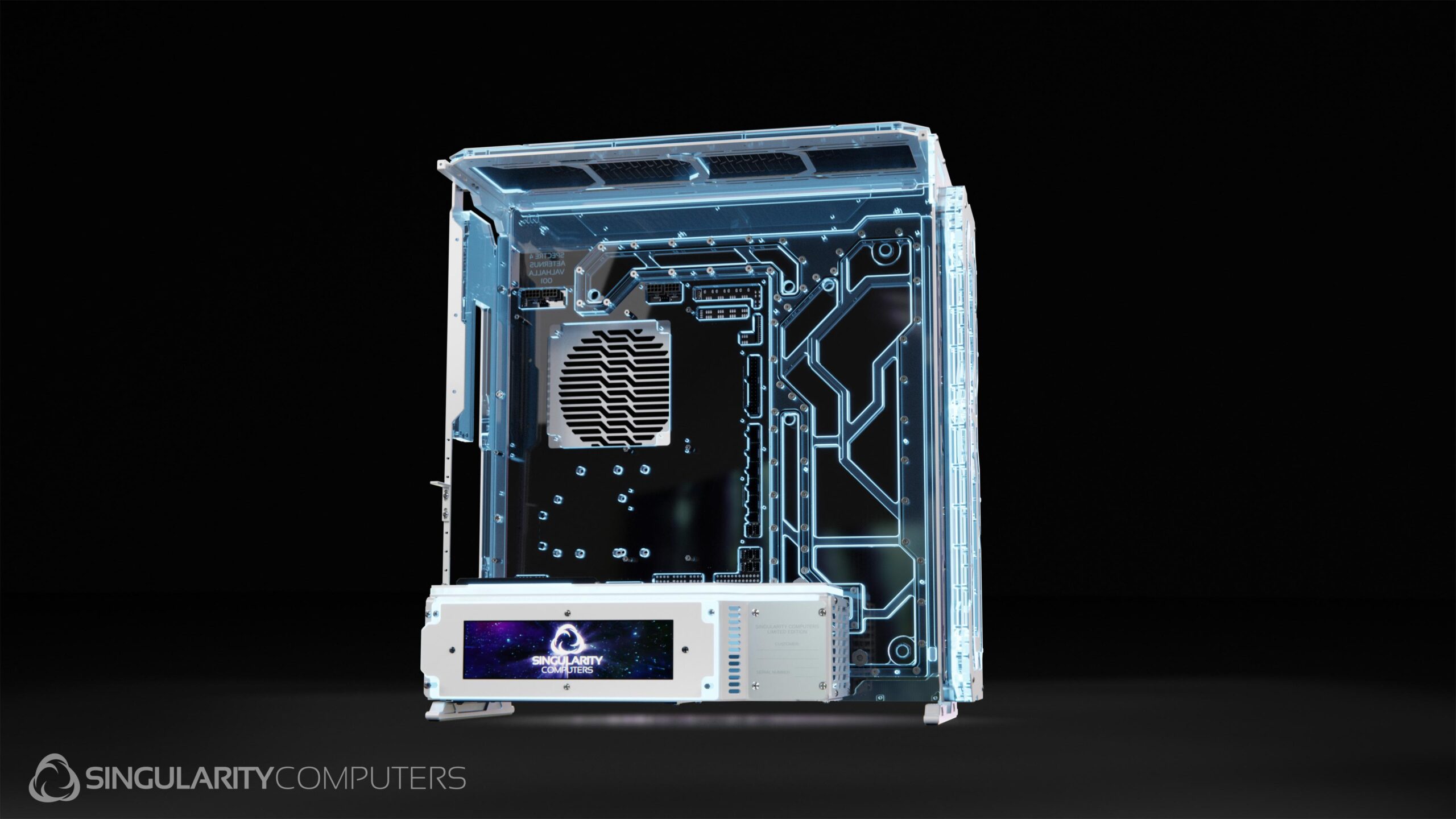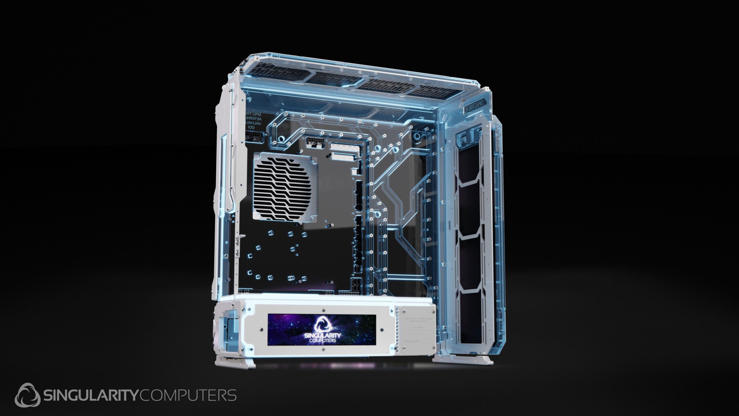 Spectre 4 is the ultimate extreme water-cooling case with more water-cooling features than any case on the market. It has the famous Singularity Computers water-cooling integration via a distribution plate which is the rear panel of the case. It has the patent pending Singularity Computers PowerBoard which removes the need for cable management while integrating many features such as temperature-based RPM control, hubs, lights etc.